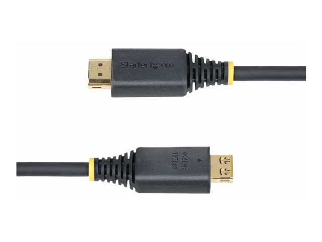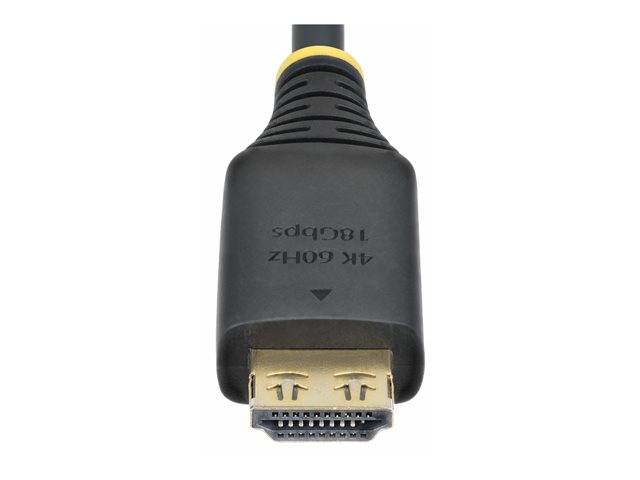 - Informasjon The StarTech.com HDMI Cable offers performance with a robust design tailored for audio and video transmission. Featuring shielded cable technology, it ensures minimal interference while supporting resolutions up to 4K at 60 Hz and 1080p at 240 Hz, making it an ideal choice for monitors and TVs. The 19-pin HDMI Type-A connectors are constructed with gold plating for reliable connectivity and include features such as strain relief and EMI protection, ensuring durability during use.