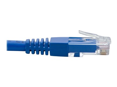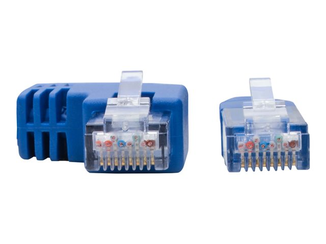 This left-angle Cat6 patch cable features a blue PVC jacket and molded blue ends. The color-coding allows easy, fast identification in a crowded rack or workstation and helps prevent the cable from becoming inadvertently disconnected.