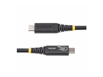 The 50 cm (1.6 ft) USB4 cable from StarTech.com ensures seamless connectivity while supporting high-speed data transfer and power delivery. With a data rate of 40 Gbps, this cable is designed to meet the demands of today's high-resolution displays and advanced audio setups. It features compliance with standards including USB4, Thunderbolt 3, Thunderbolt 4, and DisplayPort 1.4, making it a versatile choice for various devices.