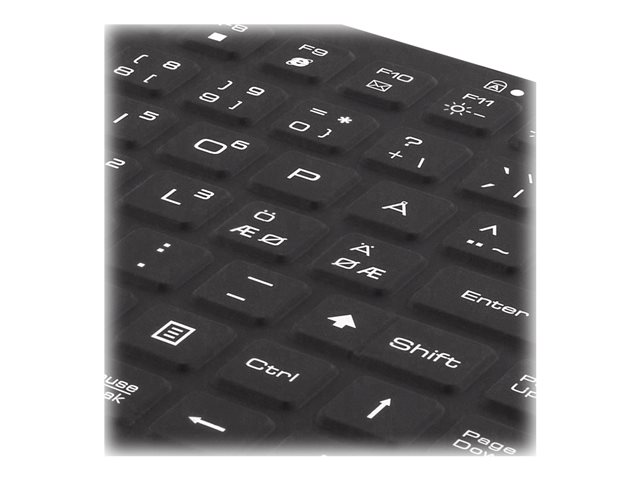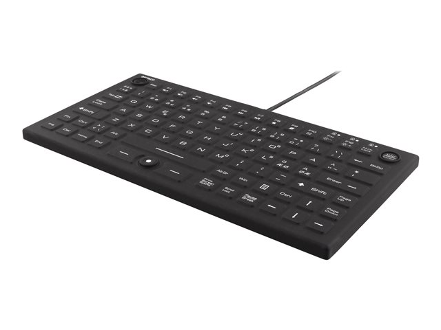 Produktbeskrivelse DELTACO TB-509 - tastatur - med pekepinne, museknapp - Nordisk - svart Inn-enhet Enhetstype Tastatur Bakbelysning Blå Grensesnitt USB Overføringsteknologi Kablet Innebygde enheter Pekepinne, museknapp Plassering og layout Nordisk Antall taster 91 Beskyttelse Smussmotstandig, IP68, vannbestandig Farge Svart Dimensjoner (BxDxH) 28.5 cm x 14.5 cm x 1.1 cm Vekt 531 g - Nedlastbare filer