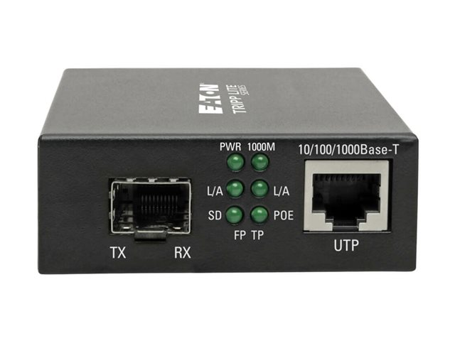 Eaton Tripp Lite Series Gigabit SFP Fiber to Ethernet Media Converter, POE+, International Power Cables, 10/100/1000 Mbps