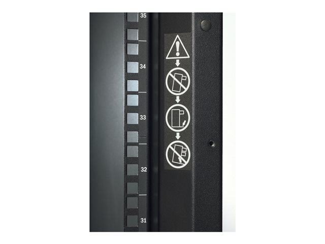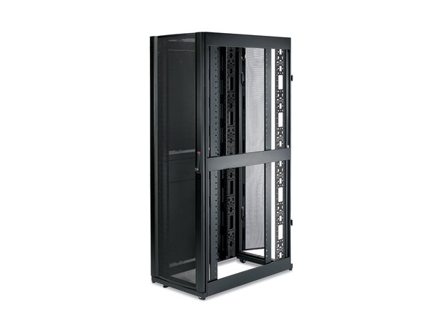 - Mounts two APC metered PDUs in one rear channel;