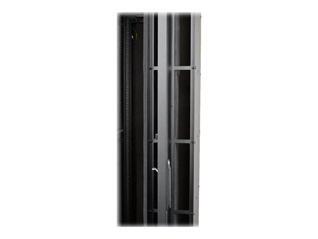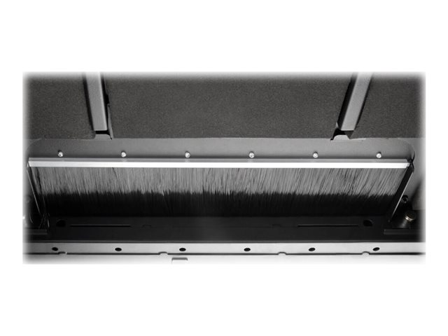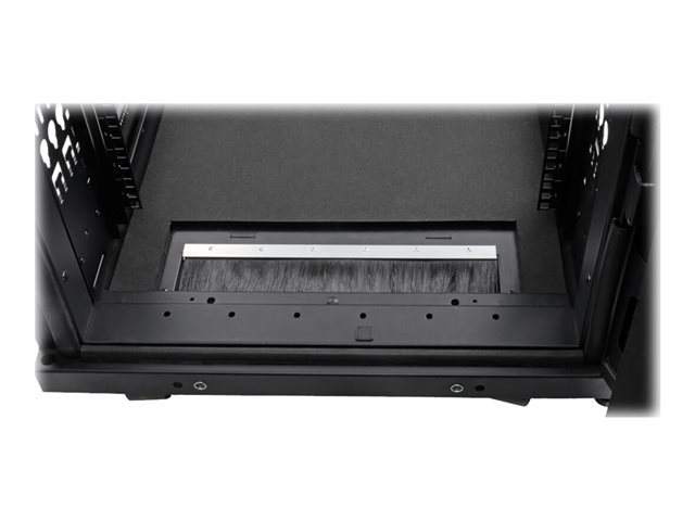 The doors and side panels lock securely to help prevent damage, tampering or theft. A unique passive airflow design maximizes cooling by drawing in cool air through the front door's intake, passing it horizontally through the enclosure, and pushing warm air out through the rear door. Convenient top and bottom cable brush strips allow easy cable routing through the cabinet while keeping dust and debris out.