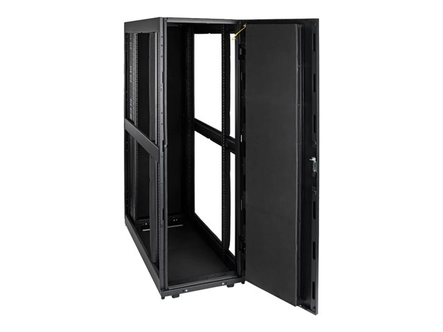 The SRQP42UB comes fully assembled and ready to deploy with pre-installed casters that let you easily maneuver it through standard doorways into proper position, where it can be secured by adjusting the removable levelers. Square mounting holes and numbered rack spaces make equipment installation easy. The vertical mounting rails adjust in 1/4-inch increments to accommodate equipment up to 42 inches deep.