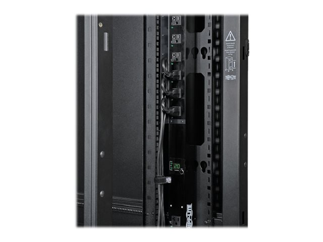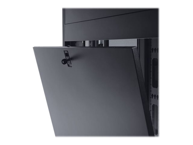 Two of the adjustable vertical mounting rails support toolless button-mount 0U installation of up to four compatible PDUs and cable managers. This feature makes it easier to route cabling to rack equipment and reduces cord clutter.