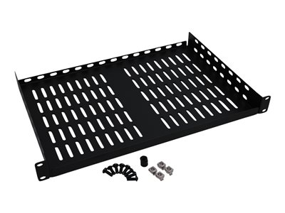 - Fixed shelf, 1U cantilever mount, cold rolled steel with black finish