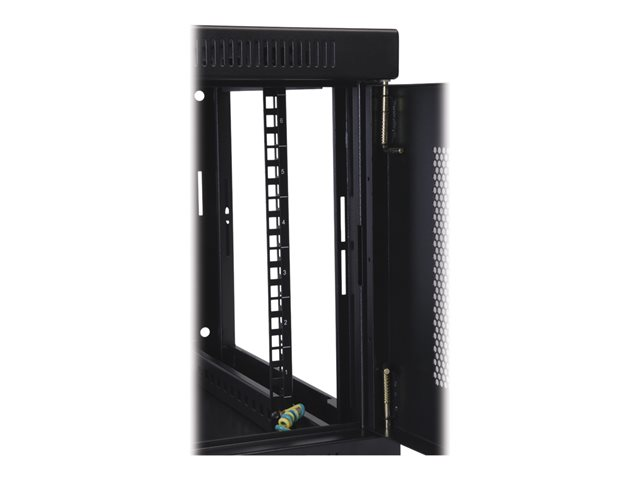 The SRW6U comes fully assembled and ready to mount to the wall, or use Tripp Lite’s optional SRCASTER rolling caster kit to make it a mobile rack. Square and threaded mounting holes and numbered rack spaces make equipment installation easy. The vertical mounting rails adjust in 7/8-inch increments to accommodate equipment up to 16.5 inches deep, such as network switches and patch panels.