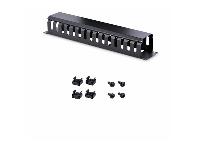 Made of high-quality steel and plastic, the cable manager is a durable solution for your server room or wiring closet. For easy installation, this horizontal cable organizer comes complete with 2 sets of rack screws (M5 and M6).