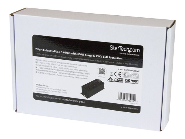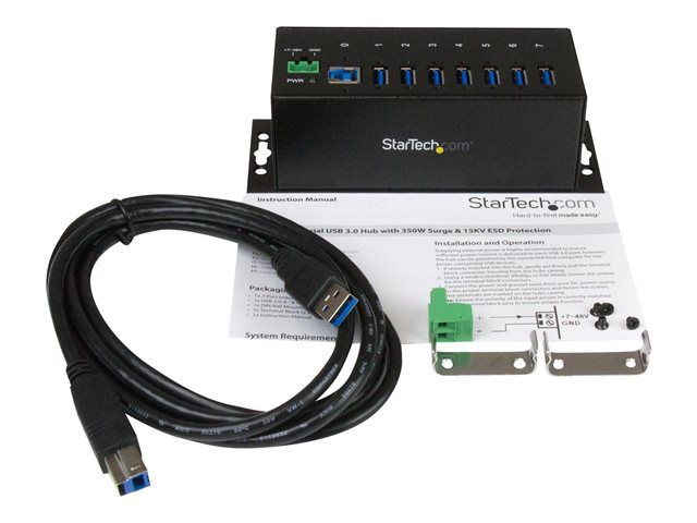 Metal Industrial USB-A Hub with ESD Protection & 350W Surge Protection - Din Rail, Wall or Desk Mountable - TAA Compliant USB Expander Hub (ST7300USBME) - hub - 7 porter