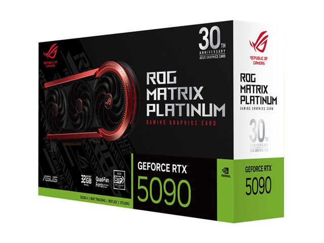 The ASUS ROG Matrix Platinum 30th Anniversary Edition combines power and precision, making it an option for gamers and creators alike. Equipped with the NVIDIA GeForce RTX 5090 graphics processor, this graphics card features 32 GB of GDDR7 SDRAM, delivering performance that supports a maximum external resolution of 7680 x 4320 across up to four monitors. With a memory speed of 28 Gbps and a bus width of 512-bit, it handles the most demanding applications, enabling smooth gameplay and rendering.