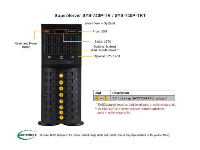 Produktbeskrivelse Supermicro Mainstream SuperServer 740P-TR - tower ingen CPU - 0 GB - uten HDD
