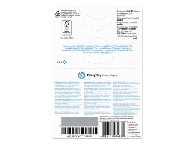- Informasjon HP Everyday glanset fotopapir gir utskrifter av fargerike hverdagsfotografier til en lav pris. Dette resirkulerbare glansete papiret tørker raskt for enkel håndtering og kan brukes i alle blekkskrivere.