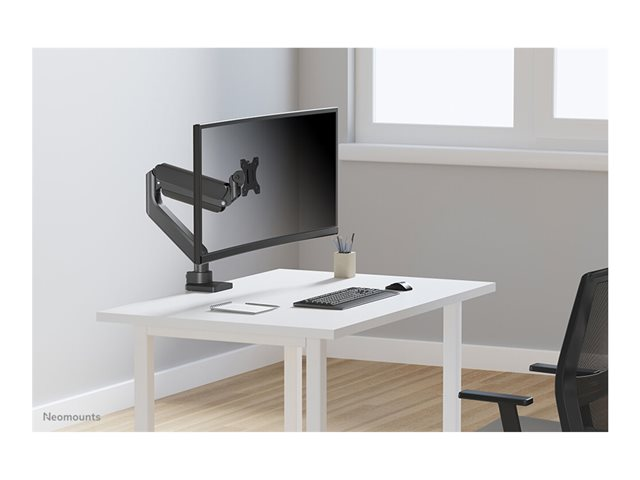 The Neomounts DS70PLUS-450BL1 NEXT Core is a full-motion desk mount for curved ultra-wide screens up to 49". The mount features a strengthened head specifically designed for curved ultra-wide screens and to support a higher maximum weight up to 18kg (curved 14kg). The versatile tilt (90°), rotate (360°) and swivel (180°) technology allows the mount to change to any viewing angle to fully benefit from the capabilities of the screen. Additionally, the mount has gas spring height adjustment (26.1-55cm) and depth adjustment (5.4-49.7cm), to create the perfect working position. The DS70PLUS-450BL1 NEXT Core features the nifty 180° stop mechanism that allows you to safely adjust the mount even when it's placed close to a wall or separation panel without making contact with the wall. The smart cable management system ensures orderly routing of the cables. The DS70PLUS-450BL1 is suitable for screens that meet VESA hole pattern 75x75 or 100x100 mm. For non-standard hole patterns, Neomounts has various VESA optional adapter plates available. The desk mount is equipped with a quick-release VESA system and comes with both a topfix clamp and grommet for quick and easy installation.