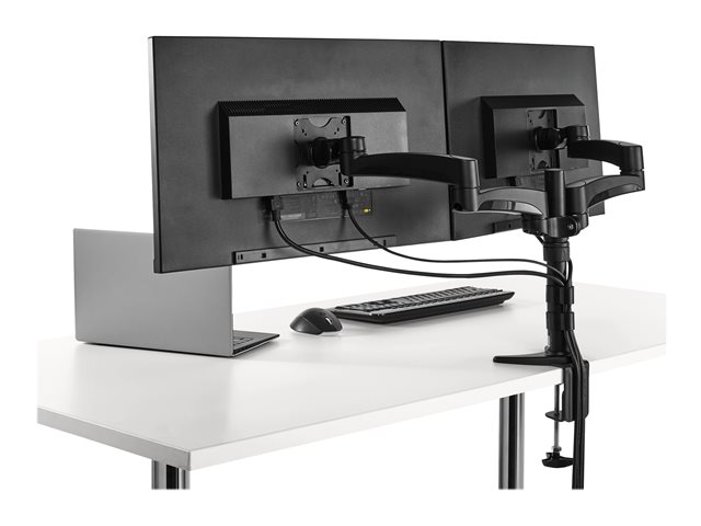 - Place your displays exactly where you want them, with dual articulating monitor arms