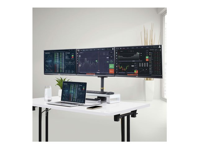 - Supports up to three 27in screens for an expansive display setup