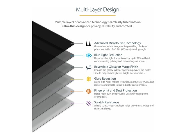 StarTech.com Monitor Privacy Screen for 21 inch PC Display, Computer Screen Security Filter, Blue Light Reducing Screen Protector Film, 16:9 Widescreen, Matte/Glossy, +/-30 Degree Viewing