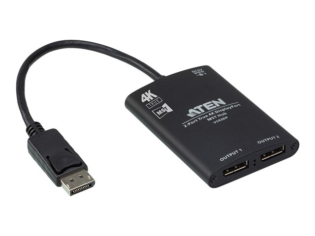 - Distributes one True 4K source to two DisplayPort displays at the same time