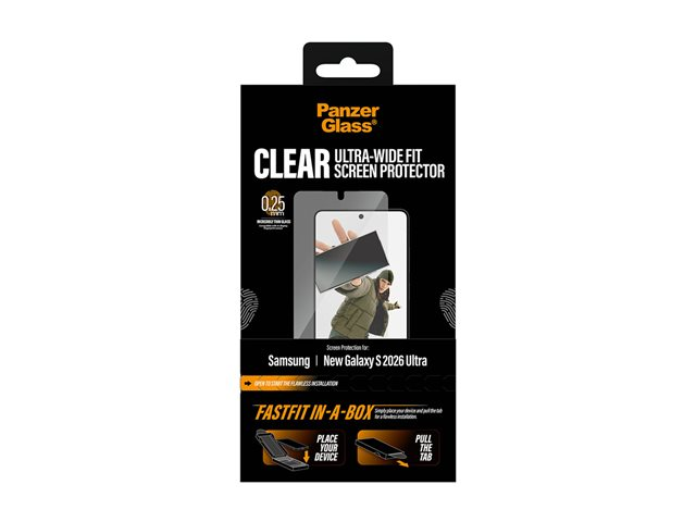 Produktbeskrivelse PanzerGlass - skjermbeskyttelse for mobiltelefon - ultra-bred passform med FASTFIT IN-A-BOX Produkttype Skjermbeskyttelse - glass Beregnet for Mobiltelefon Beskyttelse Fallbeskyttelse, motstandsdyktig mot fingeravtrykk, oljeavvisende, vannavstøtende, støtbestandig, fomlebeskyttelse, støtbeskyttelse, støtvern, smussbestandig Belegg Oljeavstøtende, fettfri Pakkeinnhold Skjermbeskyttelse, Fastfit Produktmateriale Polyethlen-tereftalat (PET), tempered glass (V220), silicone adhesive Dimensjoner (BxDxH) 7.426 cm 15.97 cm Tykkhet 0.37 mm Vekt 14 g Farge Blank Designet for Samsung Galaxy S26 Ultra - Nedlastbare filer